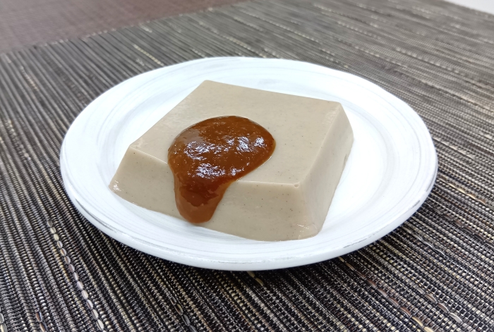 胡麻とうふを器に取り出して頂き、添付のたれをつけてお召しあがりください。
